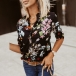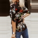 Fashion Floral Printed Buttoned V-neck Long Sleeve Shirt