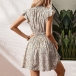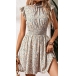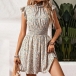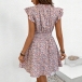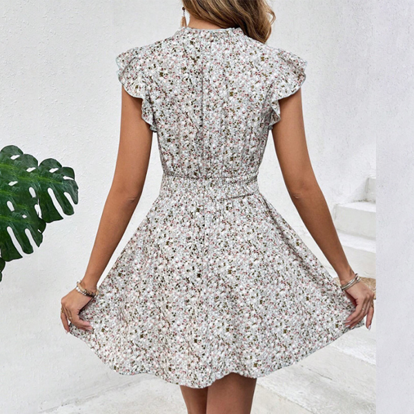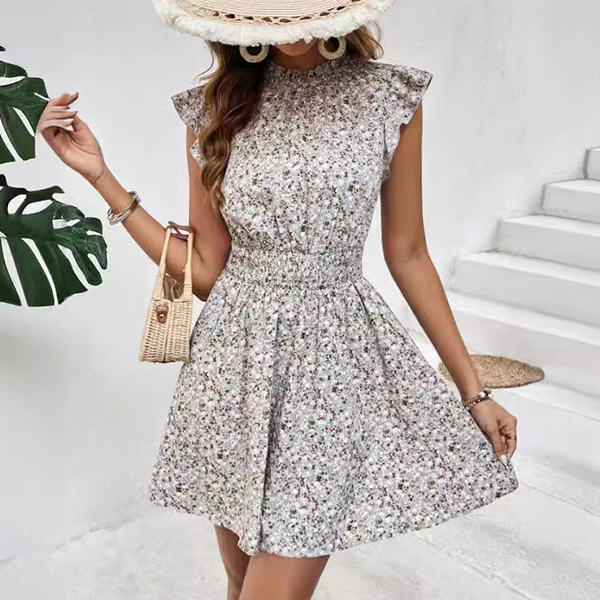 Fashion Floral Printed Cap Sleeve Elastic Waist Mini Dress