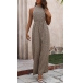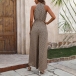 Fashion Floral Printed Crew Neck Sleeveless High-rise Wide-leg Jumpsuit