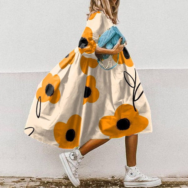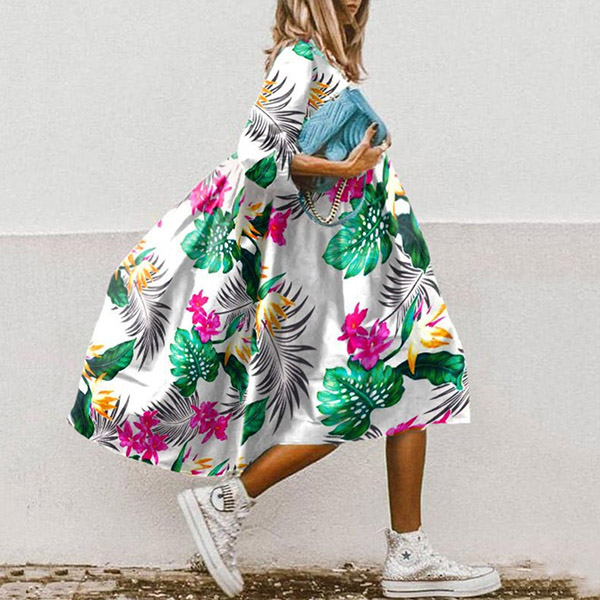 Make a stylish statement with this fashionable dress. The floral print adds a touch of femininity and elegance, perfect for any occasion. Multi-colors available.