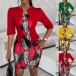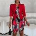 Fashion Floral Printed Elbow Sleeve Fake-two-piece Dress