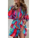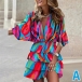 Mini dress featuring overall printed, sexy V-neck, elbow sleeve, smocked waistline and tiered skirt, Color:A/B/C/D/E/F/G, which one do you like?