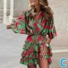 Fashion Floral Printed Elbow Sleeve V-neck Tiered Dress