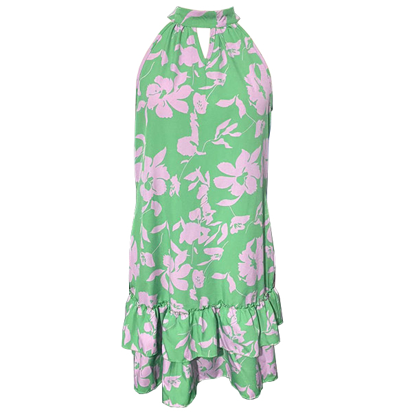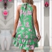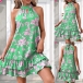 Fashion Floral Printed Halter Neck Sleeveless Ruffle Hemline Mini Dress