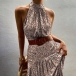 This dress features a beautiful floral print that adds a touch of femininity and elegance to the dress.