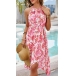 Fashion Floral Printed Halterneck Sleeveless Dress