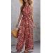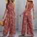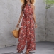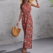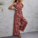 Fashion Floral Printed Halterneck Sleeveless Self-tie Straight-cut Jumpsuit