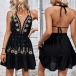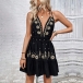 Fashion Floral Printed Halterneck V-neck Backless Mini Dress