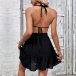 Embrace feminine charm in this Fashion Mini Dress. The vibrant floral pattern adds a playful touch to the sleek silhouette, while the halter neckline elegantly frames your shoulders. Pair with strappy sandals for daytime events~