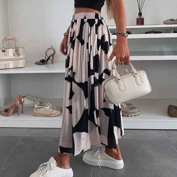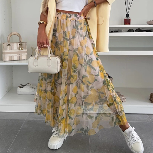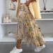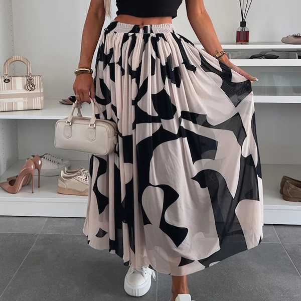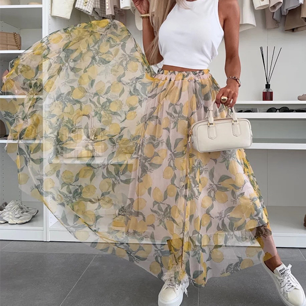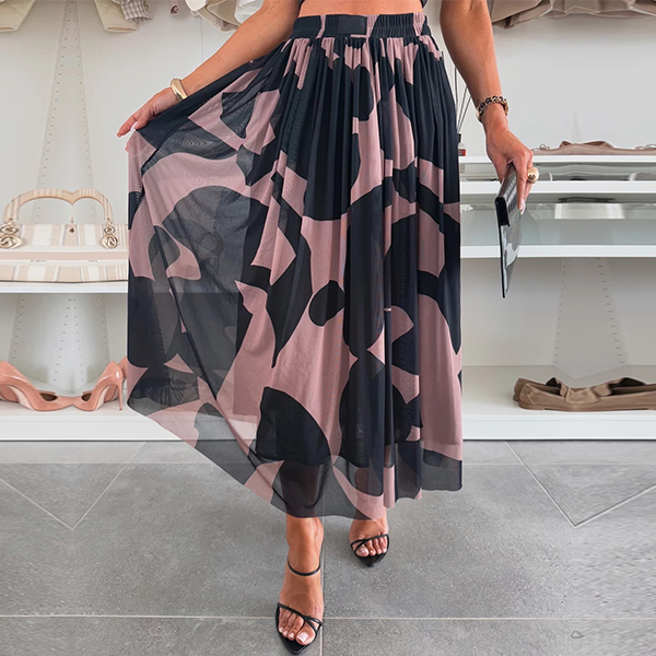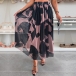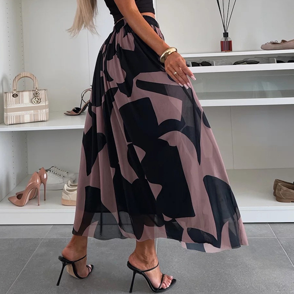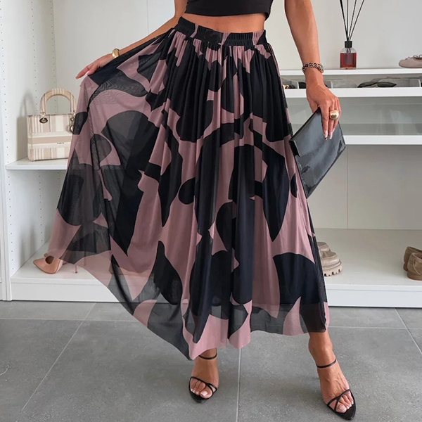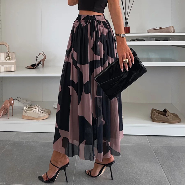 This stunning skirt showcases a captivating floral pattern that brings romantic charm to your wardrobe. The high-rise elastic waistline creates a flattering silhouette while elongating your legs. Pair with crop top for a fashion look.