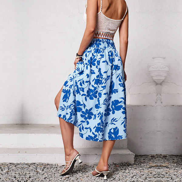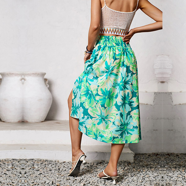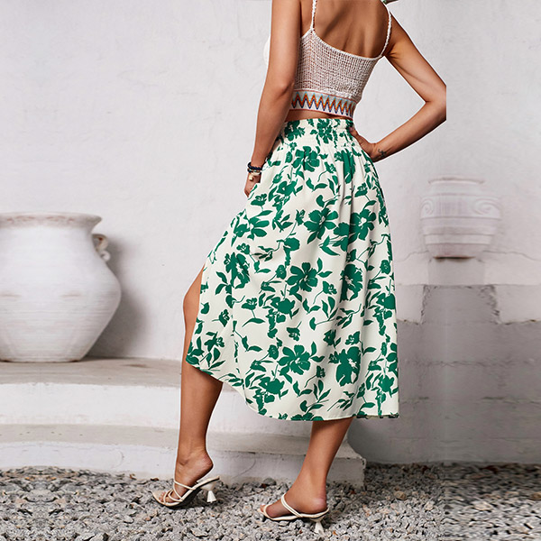 Fashion Floral Printed High-rise Slit Skirt