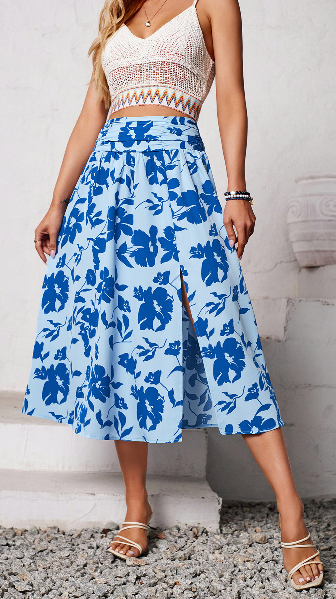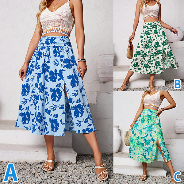 This dress features floral print design, high-rise waistline, and a slit detail for a fashionable and feminine look. Color-ABC, which one do you like?