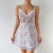 This mini dress features an overall floral printed, sexy sweetheart neckline with lace spliced details, square cut back, and mini length, wanna have a try?