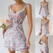 Fashion Floral Printed Lace Spliced Sweetheart Neckline Slip Dress