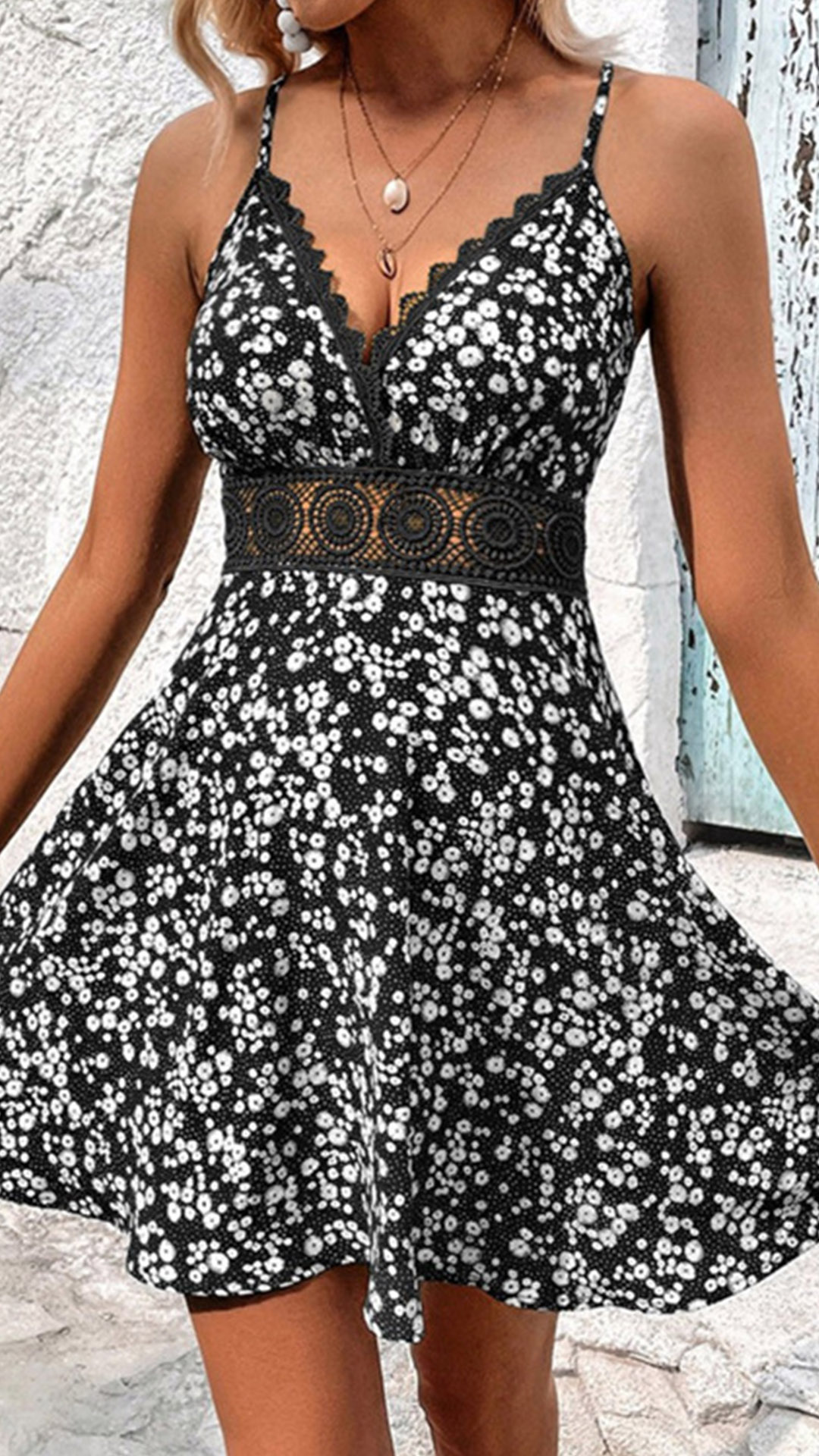 This dress showcases a beautiful floral print that adds a touch of femininity and charm. The V-neckline exudes elegance, while the lace-spliced detailing brings a hint of romance to the design. Wanna have a try?