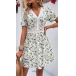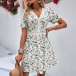 Fashion Floral Printed Lace Spliced V-neck Short Sleeve Mini Dress