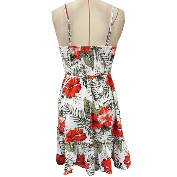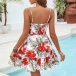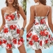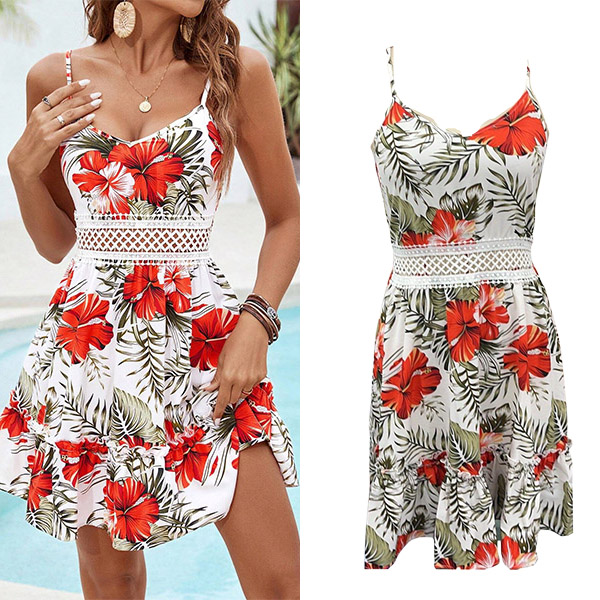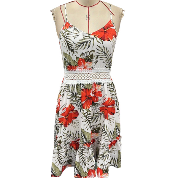 Fashion Floral Printed Lace Spliced Waist Slip Dress
