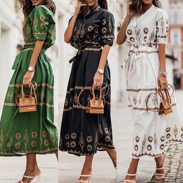 This pretty floral printed dress is perfect for any spring or summer event! It features a mock neck, elbow-length sleeves, and a self-tie waist for a flattering fit. The A-line skirt is perfect for twirling on the dance floor, and the pretty print is sure to turn heads. Color:Green,Black,Apricot, which one do you like?