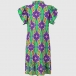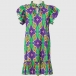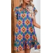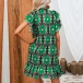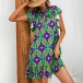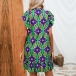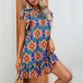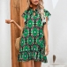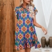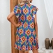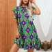 Fashion Floral Printed Mock Neck Ruffled Short Sleeve Mini Dress
