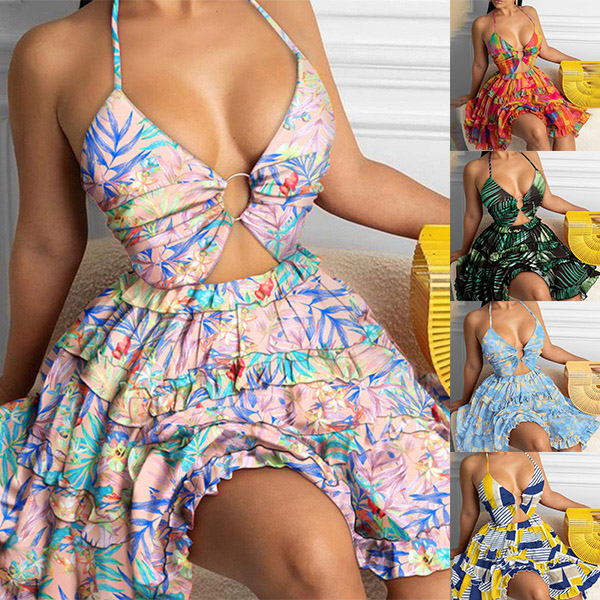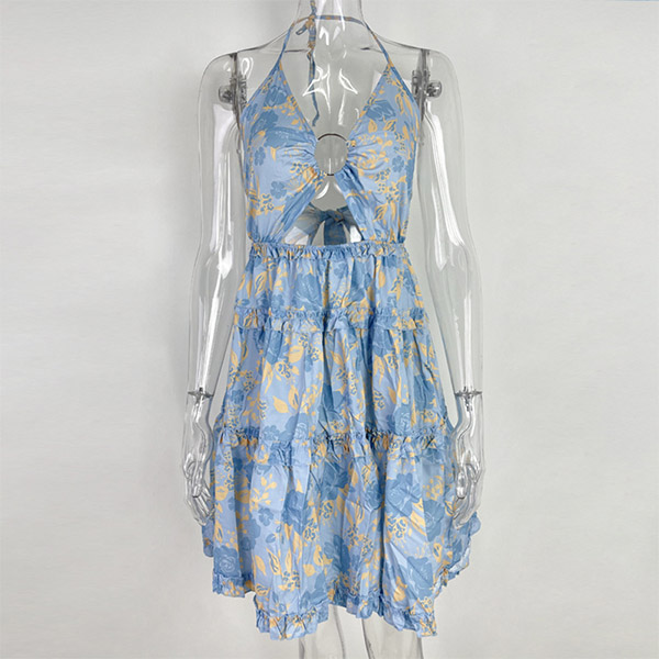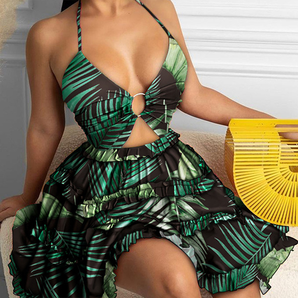 Wow, sexy dress! The o-ring halter neckline adds a unique touch to the dress, while the floral print adds a touch of femininity.