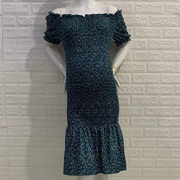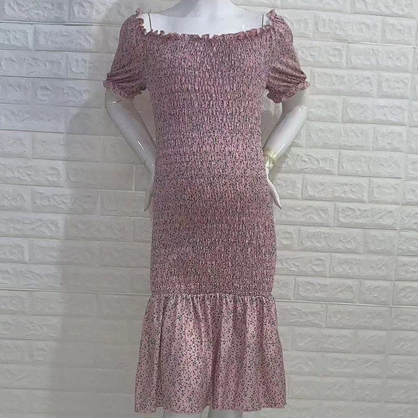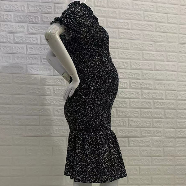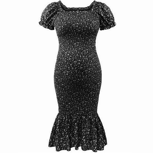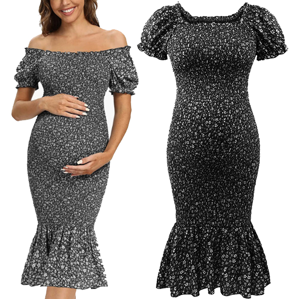 Fashion Floral Printed Off-the-shoulder Short Sleeve Fishtail Hemline Bodycon Maternity Dress