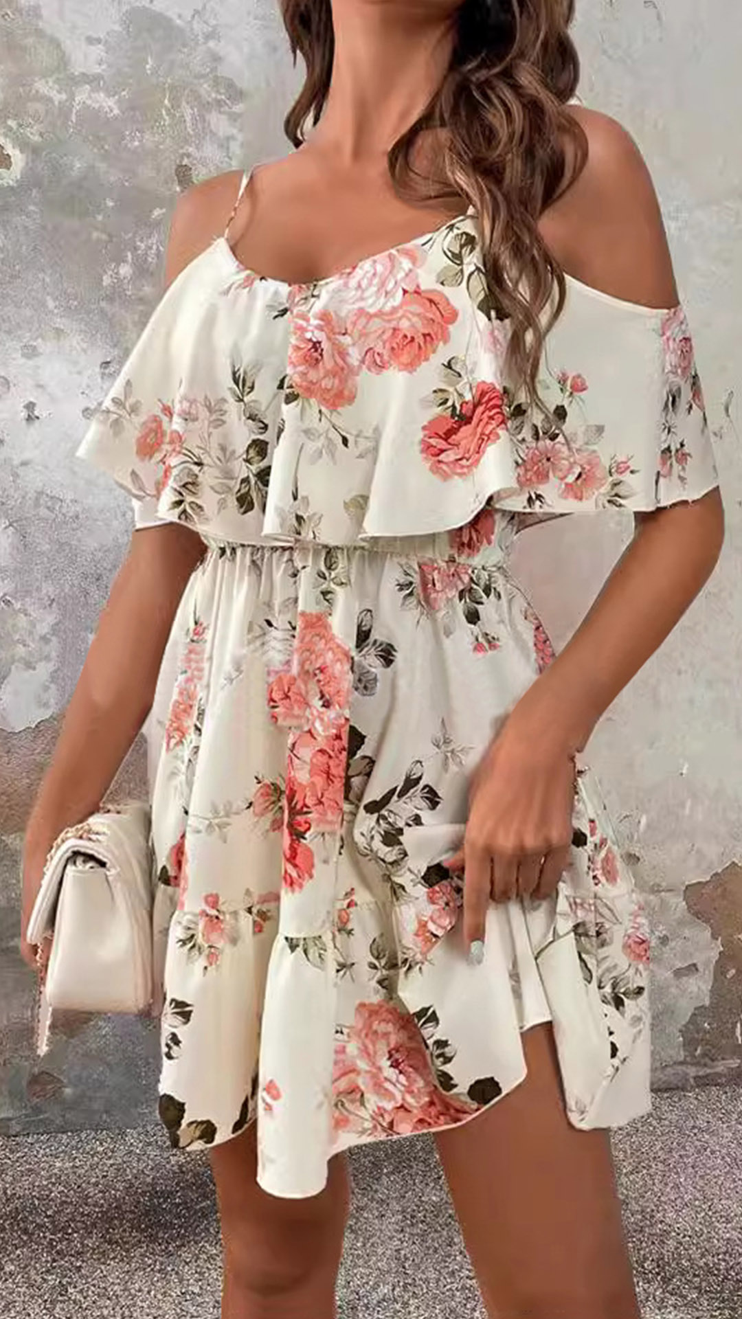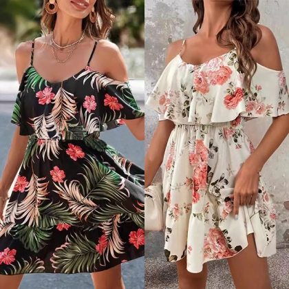 This slip dress features a floral print design with open-shoulder detailing, creating a trendy and stylish look. It is ideal for creating a fashion-forward and statement-making outfit.