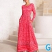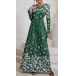 This beautiful maxi dress is perfect for any formal or semi-formal occasion! The dress features a round neckline, long sleeves, and a stunning floral print. The fitted bodice and flowing skirt are both very flattering, and the fabric is lightweight and comfortable.