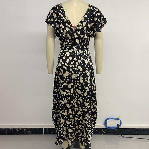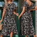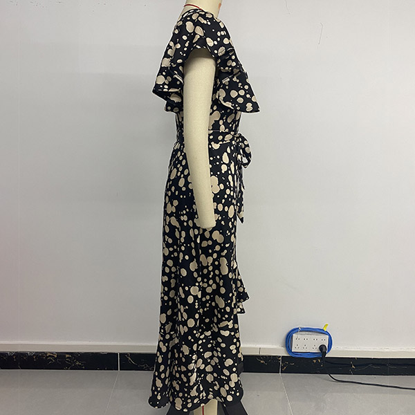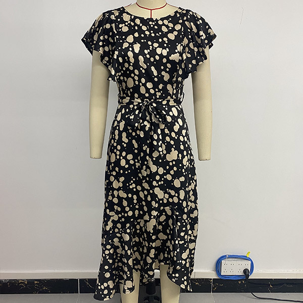 Fashion Floral Printed Round Neck Self-tie Ruffle Dress