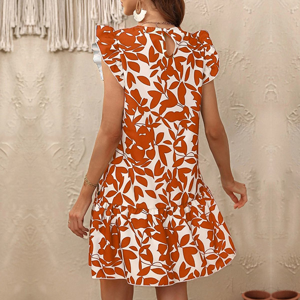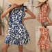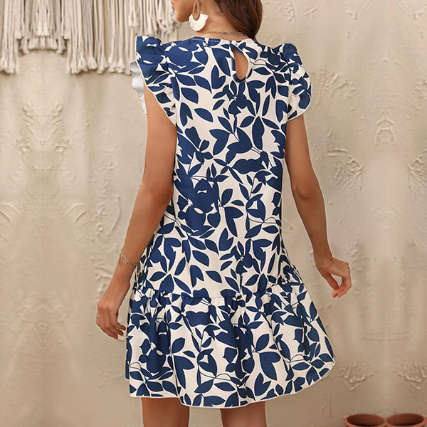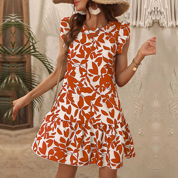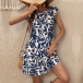 Fashion Floral Printed Round Neck Sleeveless Mini Dress