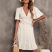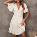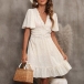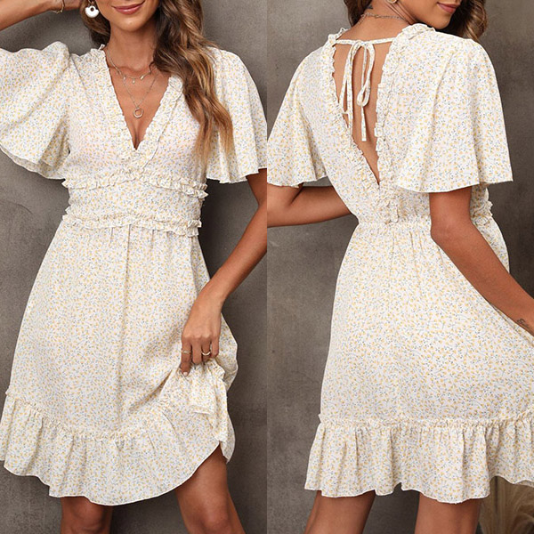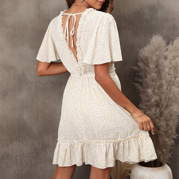 Fashion Floral Printed Ruffle V-neck Short Sleeve Mini Dress