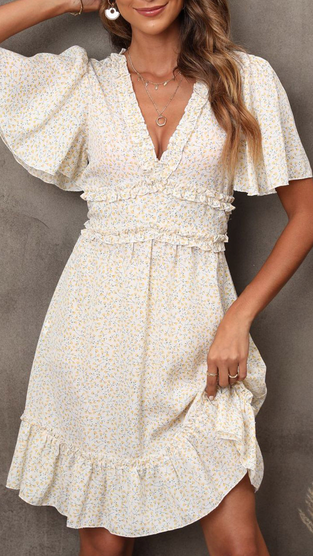 Crafted from a high-quality, lightweight fabric, this dress features a vibrant floral print that adds a touch of whimsy and elegance to any ensemble. I like the ruffle design along the V-neck and waist, and you?