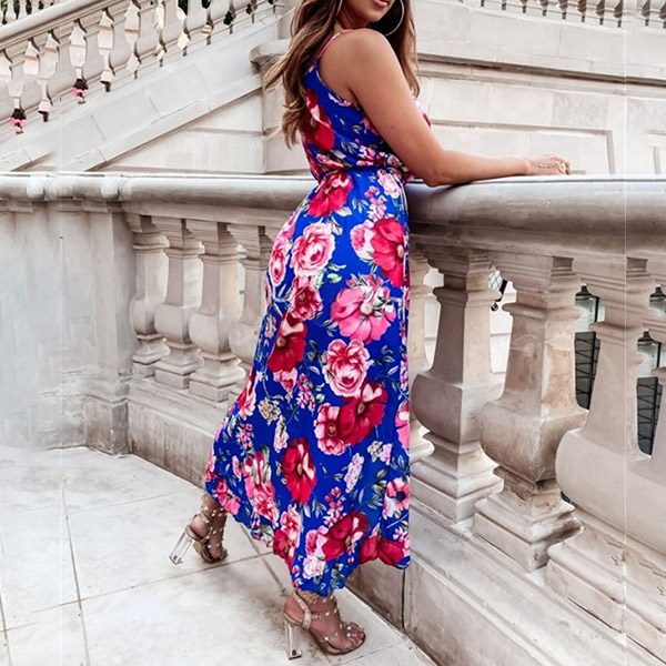 Fashion Floral Printed Ruffled V-neck Slip Dress