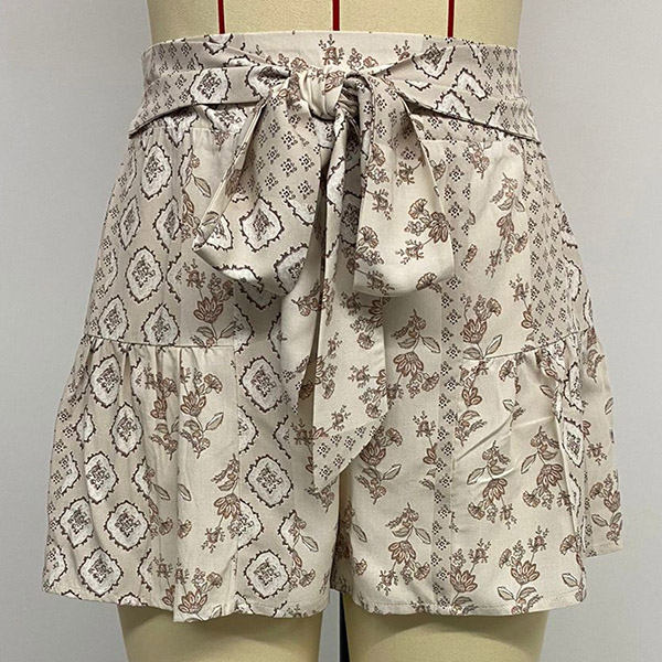 Fashion Floral Printed Self-tie Bowknot Shorts