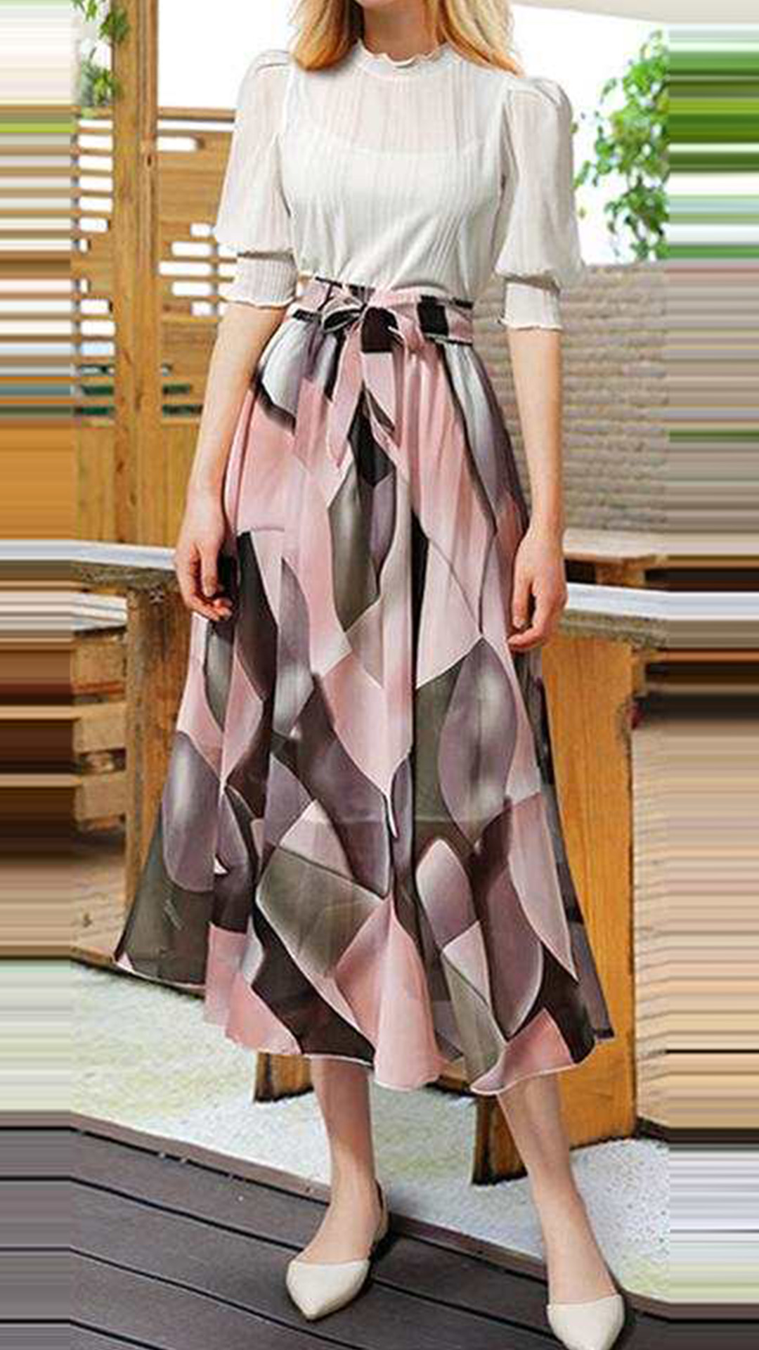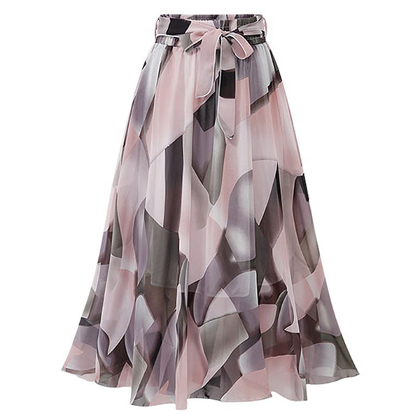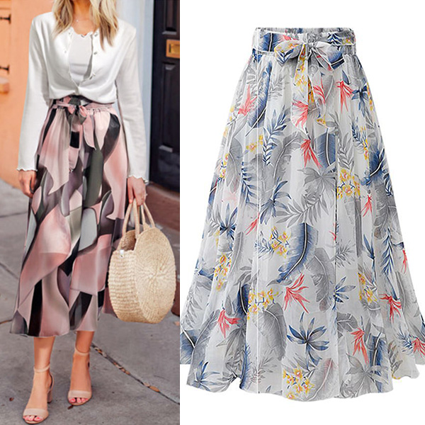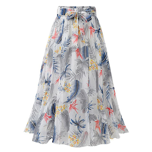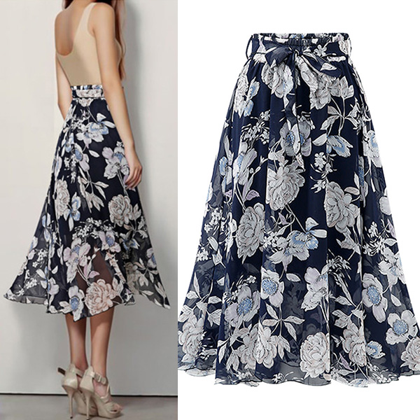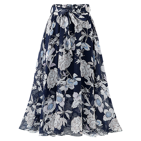 Fashion Floral Printed Self-tie Chiffon Skirt