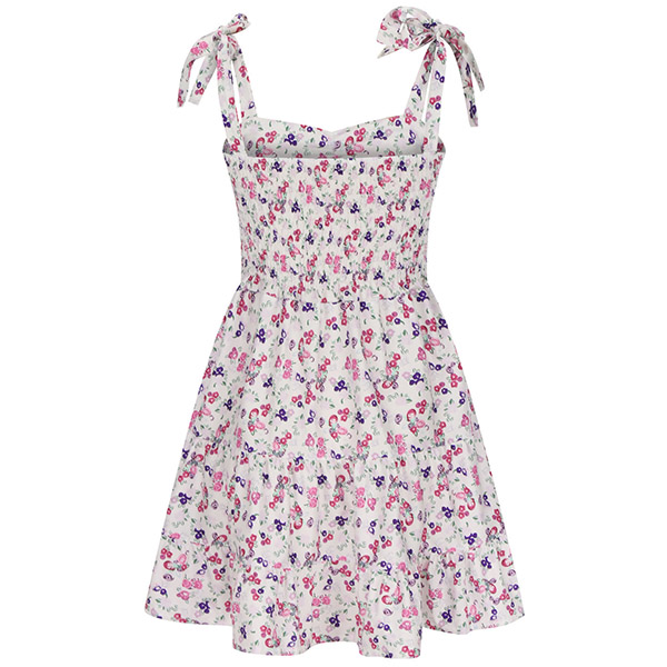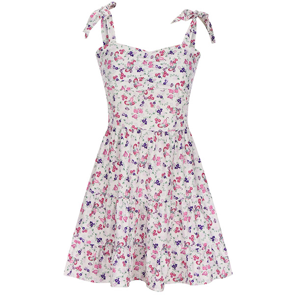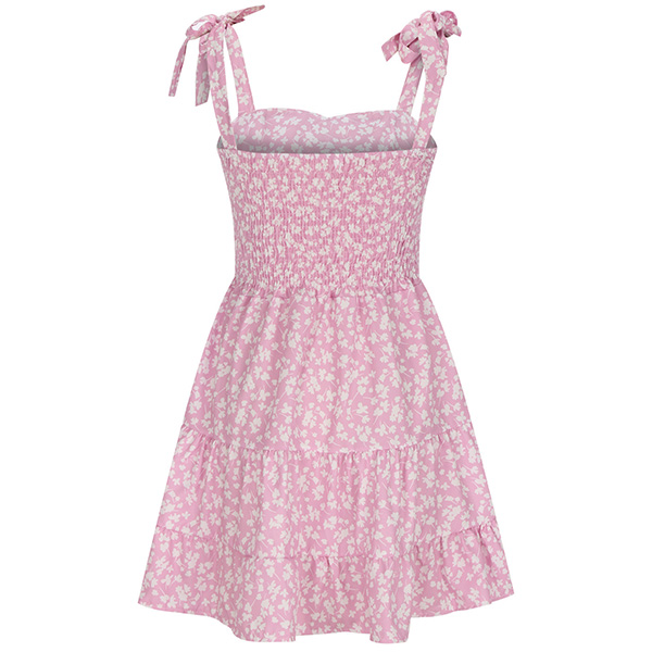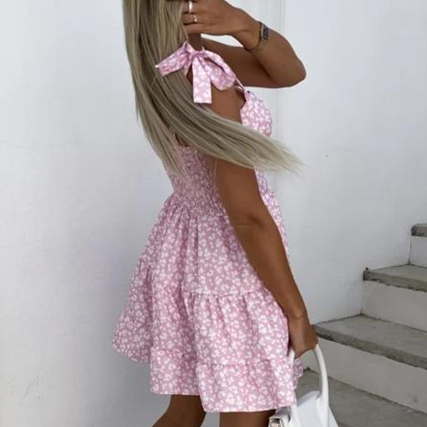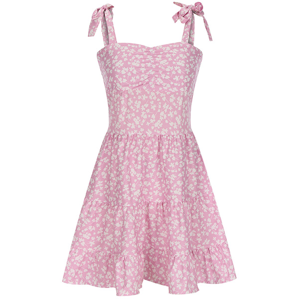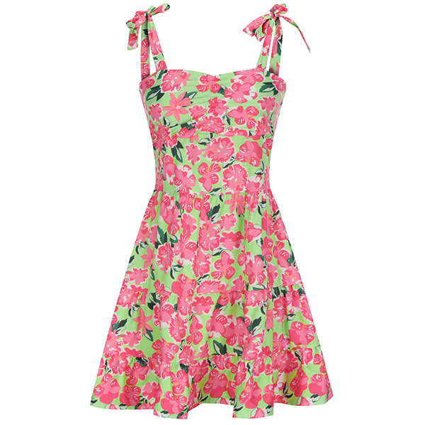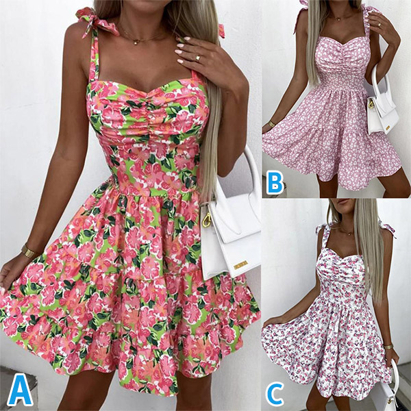 Fashion Floral Printed Self-tie Ruched Tiered Fit & Flare Dress