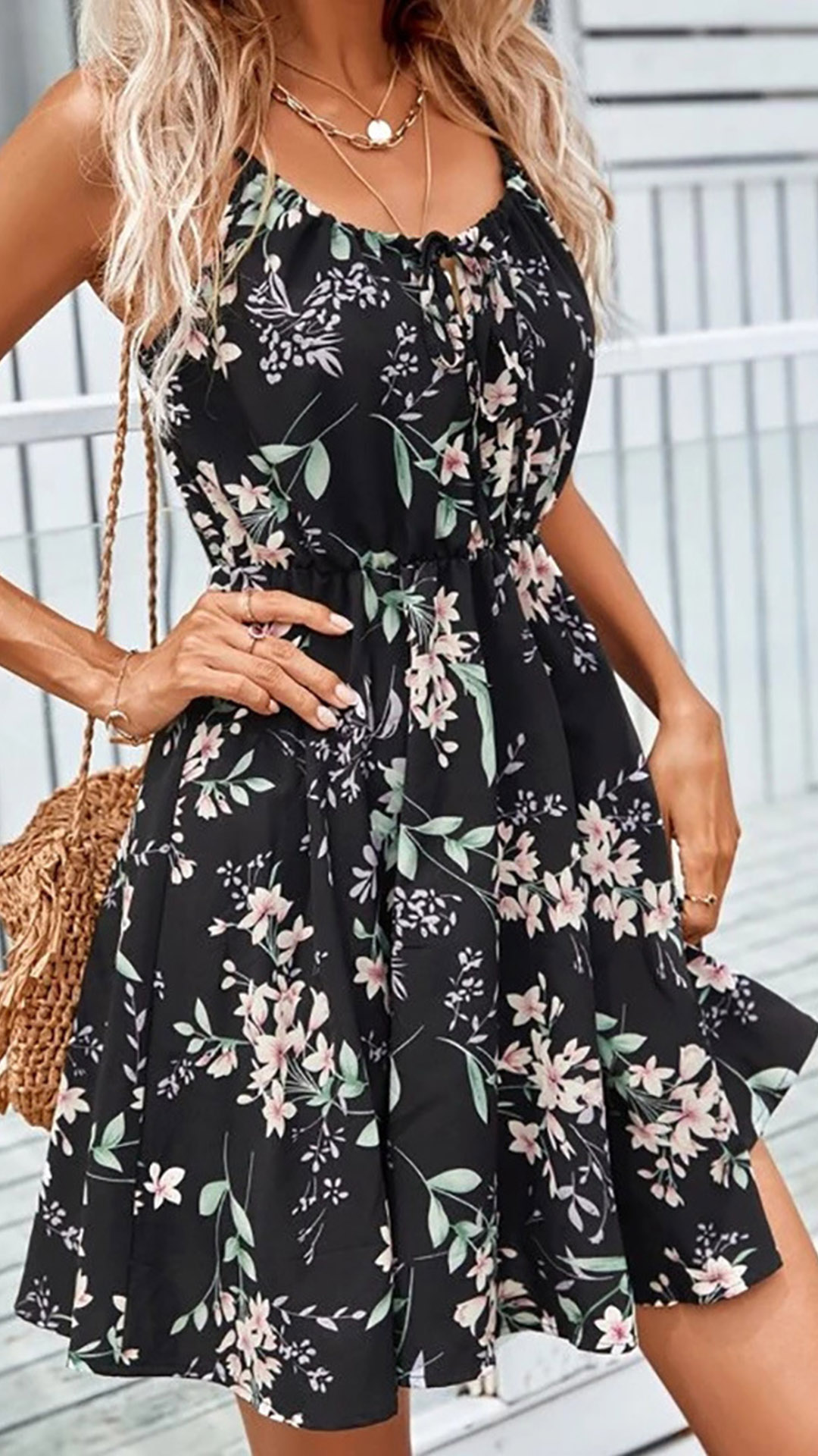 This floral printed slip dress is the perfect way to add a touch of femininity to your wardrobe. The delicate print is offset by the sleek silhouette of the dress, making it the perfect choice for daliy wear.