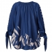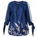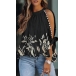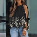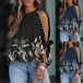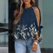 Fashion Floral Printed Slit Elbow Sleeve Beaded Shirt