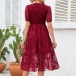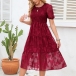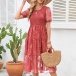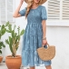 Fashion Floral Printed Smocked Round Neck Short Sleeve Dress