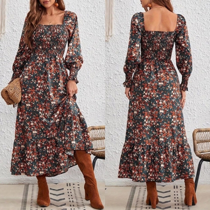 Embrace your feminine side in our Fashion Floral Printed Midi Dress. This charming dress features a square neckline that adds a touch of elegance and sophistication to the look. The long sleeves provide coverage and warmth, while the floral print adds a romantic and whimsical touch. The midi length is flattering and versatile, making it perfect for a variety of occasions. Pair it with heels and delicate jewelry for a polished and ladylike outfit.