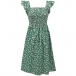 This midi dress features an overall printed, square neckline and ruffle sleeveless design that is chic and flattering. The smocked bodice provides a comfortable and form-fitting detail that accentuates the waist and adds structure to the overall design. The high-rise waistline creates a flattering and elongating effect, making this dress perfect for a variety of body types. Hope you like it.