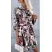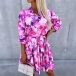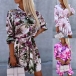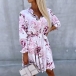 Fashion Floral Printed Stand Collar Long Sleeve Self-tie Shirt Dress