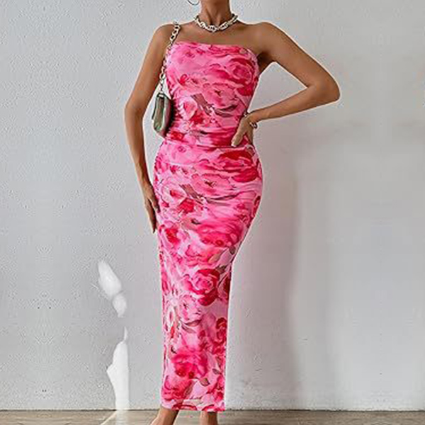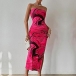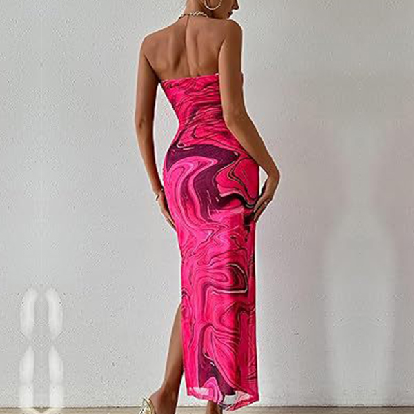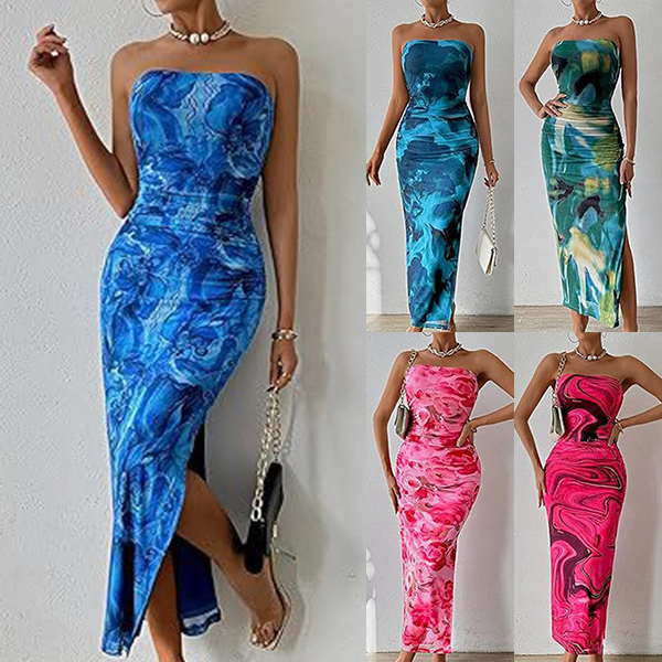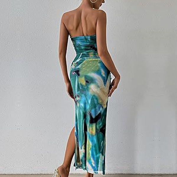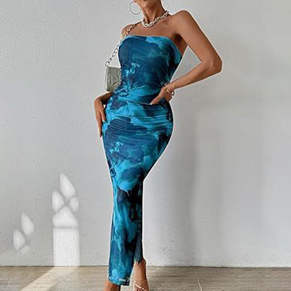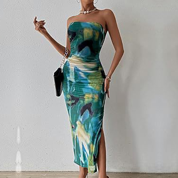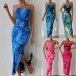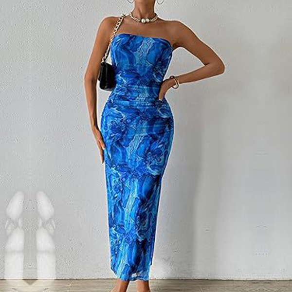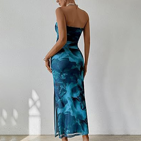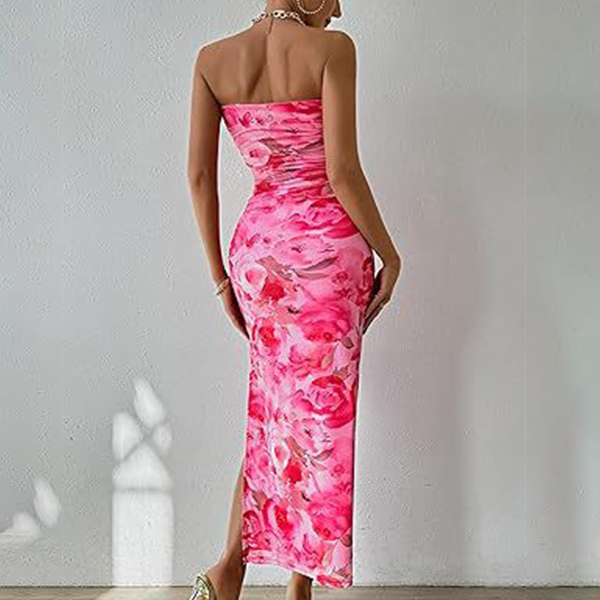 Fashion Floral Printed Strapless Maxi Bodycon Dress