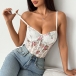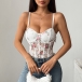 Fashion Floral Printed Sweetheart Neckline Lace Corset Bodysuit
