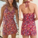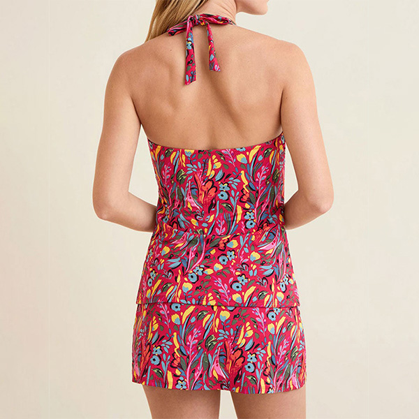 Fashion Floral Printed Swimsuit Set Consist of Halter Neck Swimming Shirt and Swimming Skirt