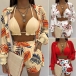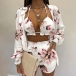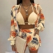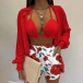 Fashion Floral Printed Three-piece Blazer Set Consist of Blazer, Brassie and Shorts