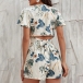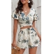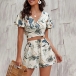 Fashion Floral Printed Two-piece Consist of V-neck Crop Top and Elastic Shorts