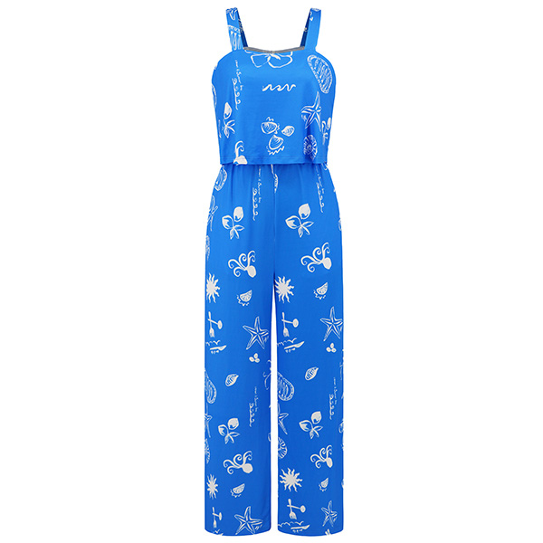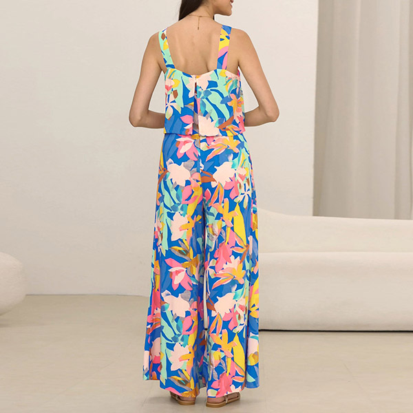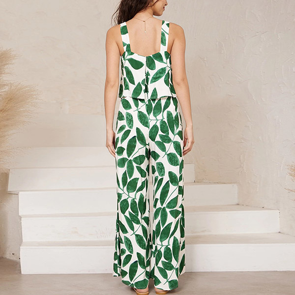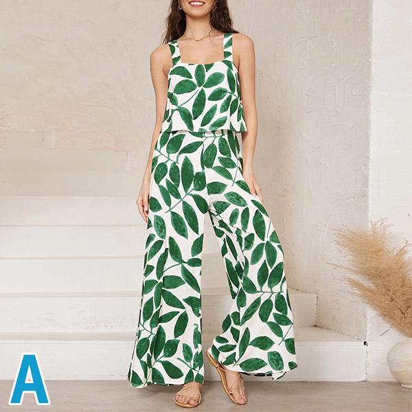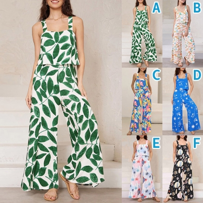 Fashion Floral Printed Two-piece Set Consist of Crop Top and Wide-leg Pants