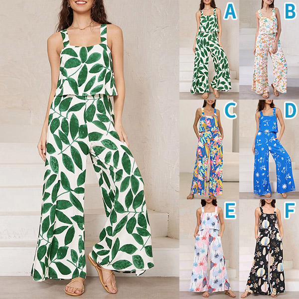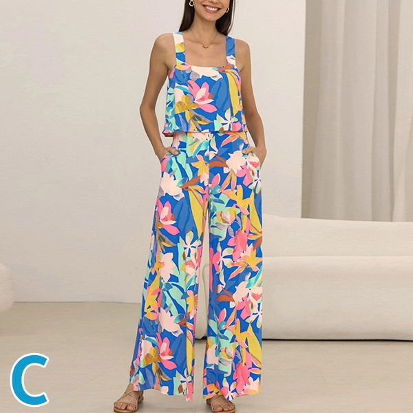 This set features a vibrant and captivating floral print, a trendy crop top, and flowy wide-leg pants, creating a stylish and coordinated ensemble. Multi-pattern avaible.