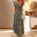 Fashion Floral Printed Two-piece Set Consist of V-neck Crop Top and Maxi Skirts