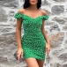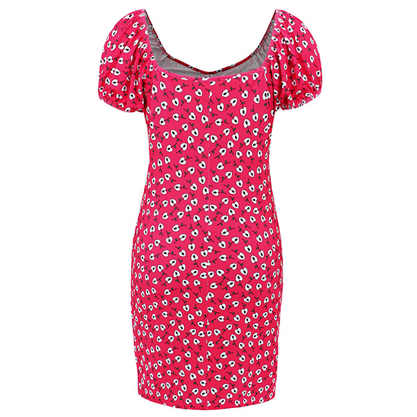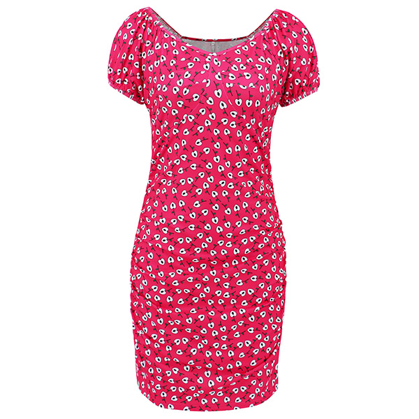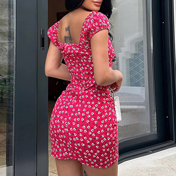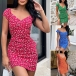 Fashion Floral Printed V-neck Cap Sleeve Bodycon Dress